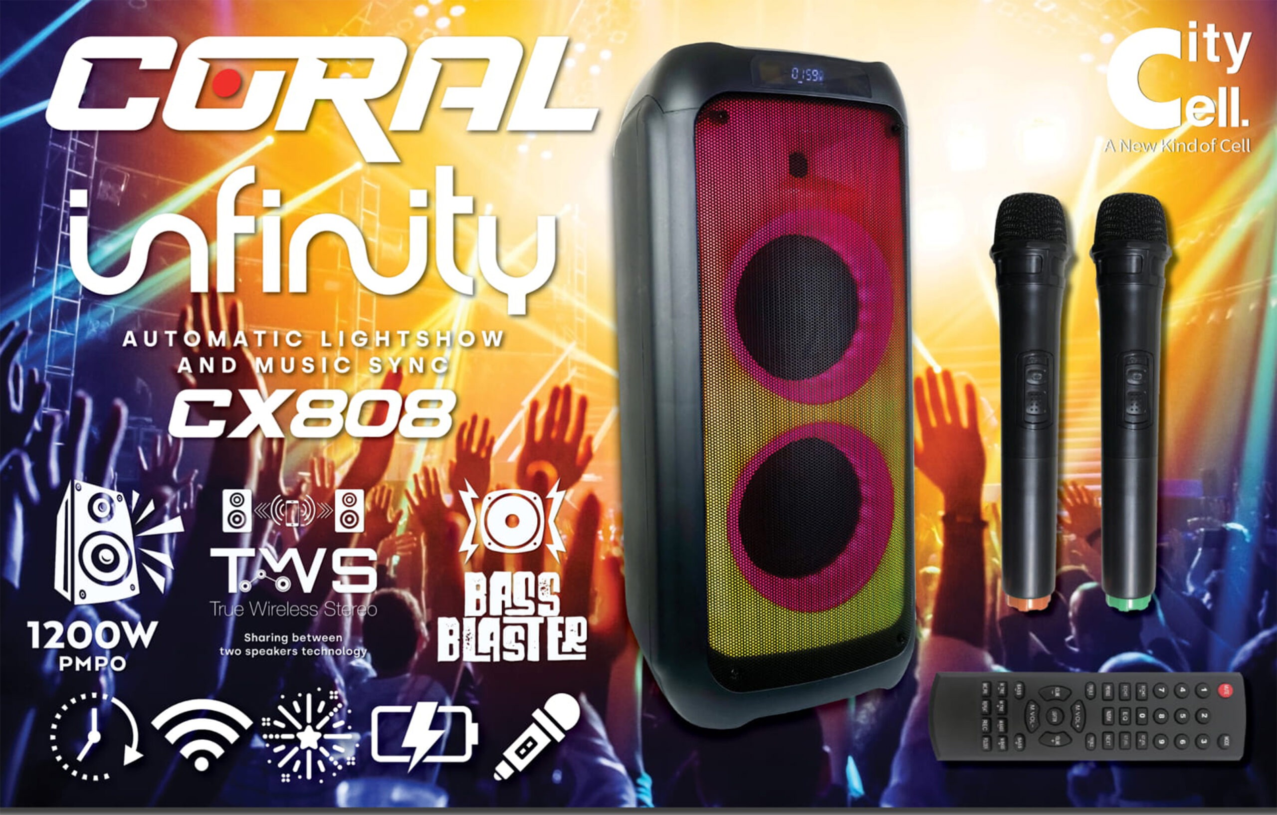 Coral Infinity רמקול נייד עם מיקרופונים 800W